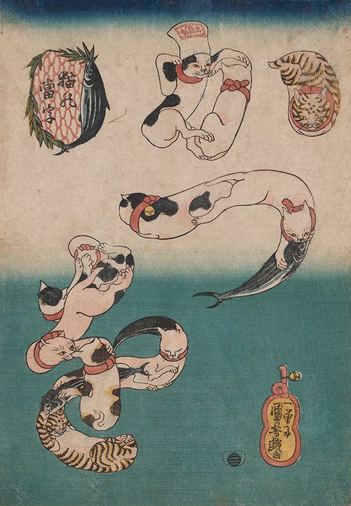 歌川国芳《「猫の當字」かつお》 江戸時代 1842年頃